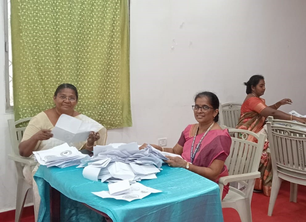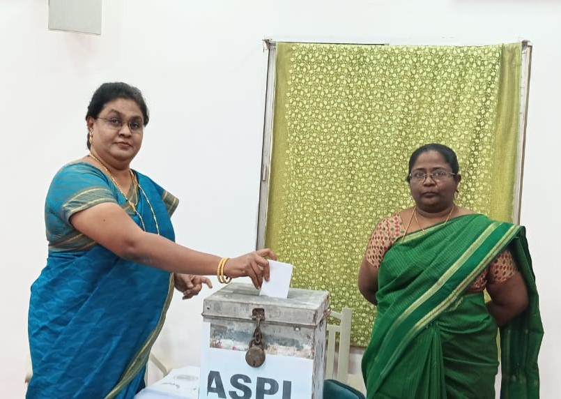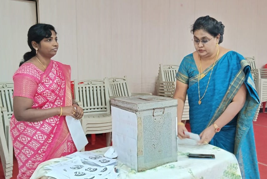 Nominated students gave their speech which was followed by election. Students from classes IX, X and XI participated in the election. The Principal and the staff members also participated and voted.