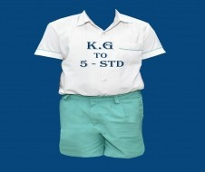 Nursery to Std. V : Boys - Apple Green shorts and White shirt Black shoes with white socks.