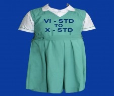 VI to Std. X : Girls - White shirt & apple green pinafore, Black shoes with white socks and white ribbon.