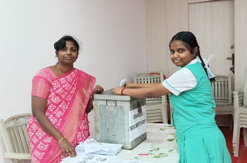 Nominated students gave their speech which was followed by election. Students from classes IX, X and XI participated in the election. The Principal and the staff members also participated and voted.